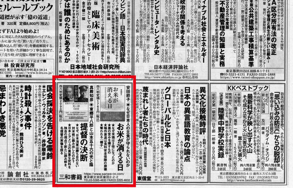 9月27日、日本経済新聞12面に『提督の決断』『お米が消える日』が掲載されました。
