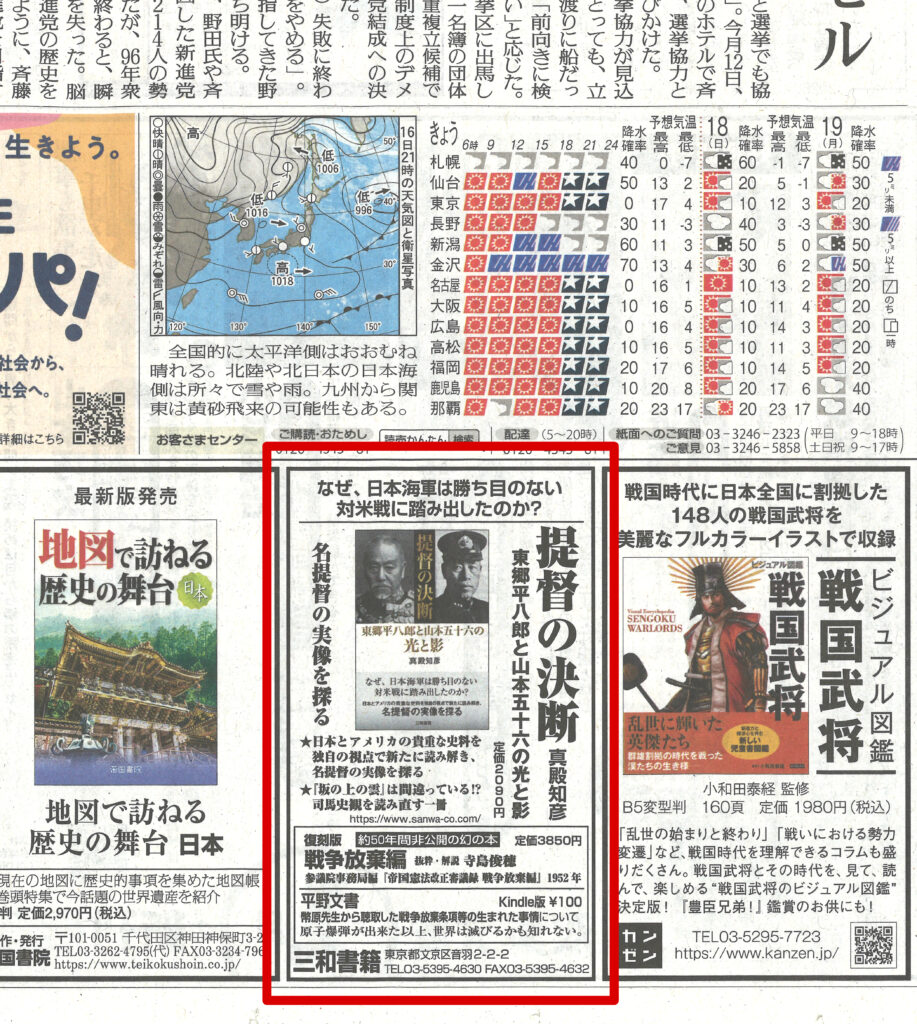 1月17日、読売新聞1面に『提督の決断』『復刻版 戦争放棄編』が掲載されました。