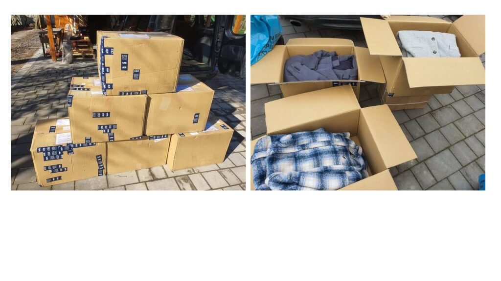 日本財団ボランティアセンターよりいただいた衣類計8箱を前線のスームィ州を初めテルノーピリ州、リヴィウ州に届けました。一度にできるだけ多くの物資を届けるため、全てダンボールから出し、袋に詰め替える作業をウクライナの友人達と共に行いました。